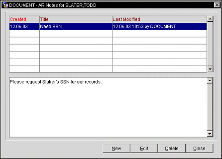 Multiple notes can be edited and deleted depending on the user rights. All AR account notes are considered internal and are not available to be passed through to customer documentation.
