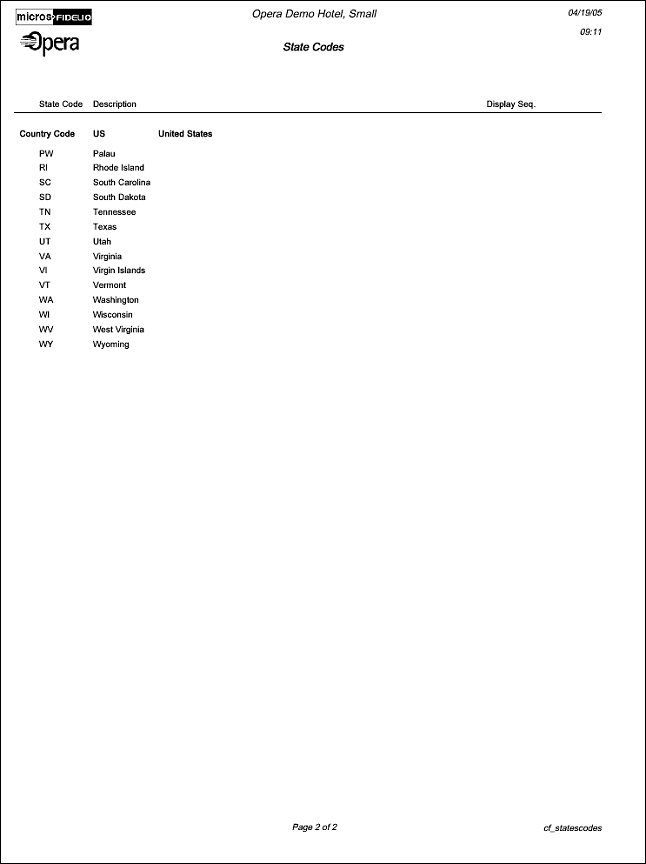 Reports Overview > Property Management System Reports Group > Configuration Reports Group > Configuration - State Codes (cf_statescodes with GENREPPAR.FMX)