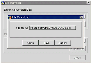 The upper part of the Export/Import screen is called the Export Conversion Data.