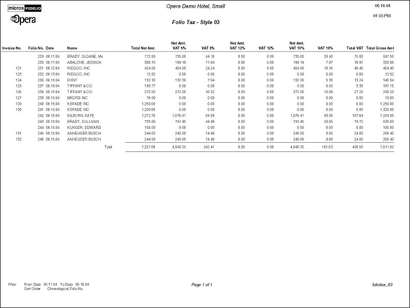 The intent is to display the breakdown of VAT Tax that was posted on each reservation for a specified date range.