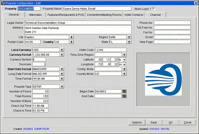 End Date. Date the property is no longer active. Available when the OPS_<version number> OPERA S&C license is active.