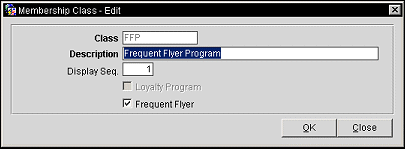 Frequent Flyer. Check this box if the membership class is a frequent flyer program. This category is used for any airline reward program. Only one class may be selected as a frequent flyer program.