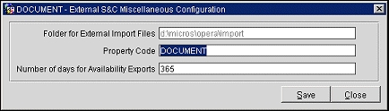 Folder for External Import Files. Enter the directory on OPERA's network where OPERA will collect Sales & Catering's files that have been imported.