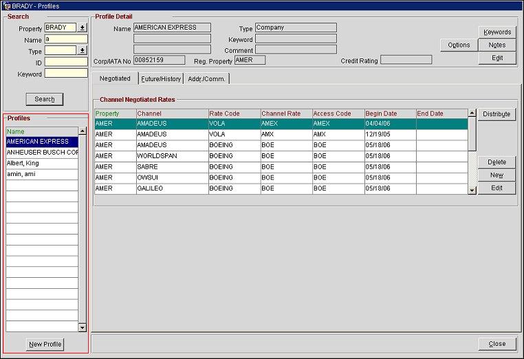 The Profiles area displays a list of available profile based on the search criteria entered.