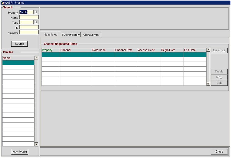 The Profiles screen allows users to manage profiles for online bookings. By default, users can only view and work with profiles in OCM that are configured for the property for which the profile request was made. If the Show ORS Profiles in OCM Profiles group Application parameter is active, users are able to view and work with both ORS profiles and profiles that are configured for the property. To access the Profiles screen, log into OCM and select the Profiles menu option.