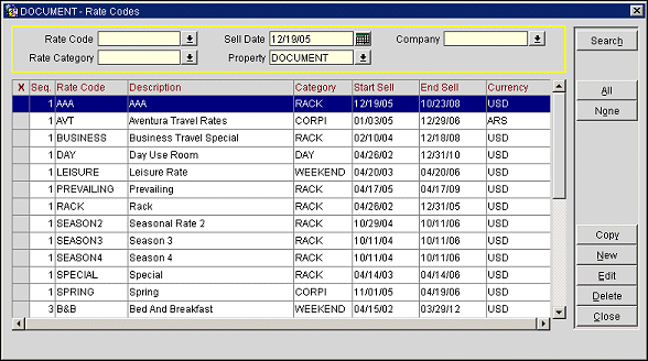 Property. Available if the OPP MHOT Multi-property add-on license code or the OPR<version number>ORS license code is active. Select the down arrow to change the property to view and manage rate codes.