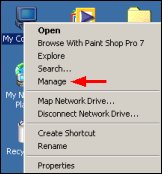 1. Right-click on the My Computer icon and select Manage. The Computer Management Window appears.