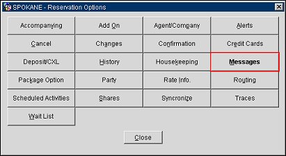 From here it is possible to press the Enter key on your keyboard and be taken directly to the Messages screen. The Options menu will remain open behind whatever screen you access until you select Close.