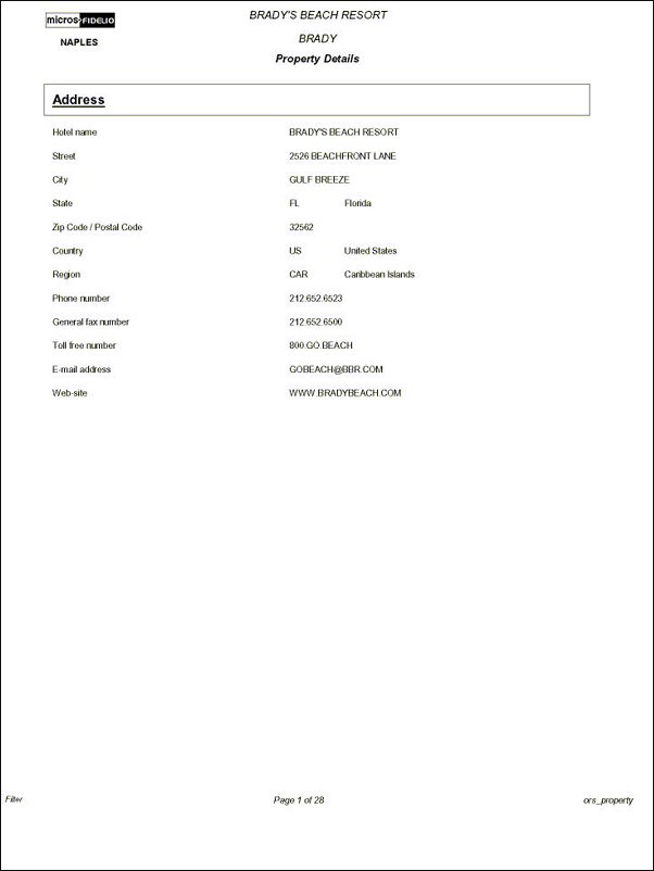 - Hotel Address, Phone Number, Fax number, E-mail address, Web site URL