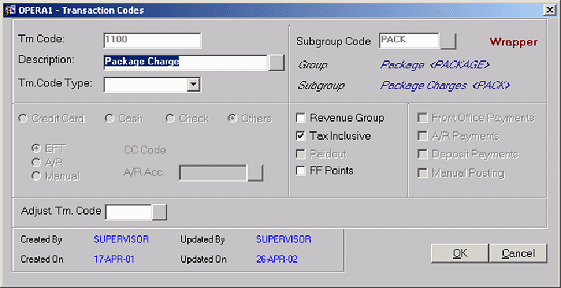 The Tax Inclusive/Exclusive checkbox is irrelevant for this wrapper code. There must not be generates on the wrapper code. The purpose of the wrapper is as a system code used to post the package rate amount. It is not revenue and should not be configured as such.
