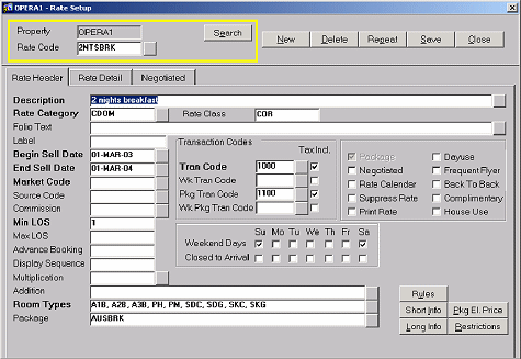 In this example, we have created an inclusive rate of $200.00 that included breakfast to the value of $25.00 per person. Internally we have given an allowance of up to $50.00, which the guest can use but is unaware of this amount. The flight was a red eye so the guest didn't have the time to have breakfast.