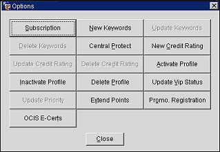 Statistics. Selecting this button displays the status of the pending queue for the profiles to be distributed and subscribed. When the subscription process is complete, the Query Name remains on the screen for reference. (See the Options Screen Description below for more information on the Subscription button.)