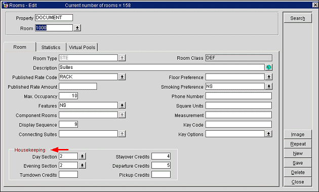 Housekeeping Stayover Credits/Departure Credits. These fields display only when the Rooms Management > Housekeeping Credits application setting value is equal to Rooms. In these fields you can enter credits or time allotments corresponding to the amount of cleaning time necessary to prepare the room. Because Departure rooms may take longer to clean than Stayover rooms, Housekeeping departments sometimes use this feature to more equitably distribute assignments to attendants each day.